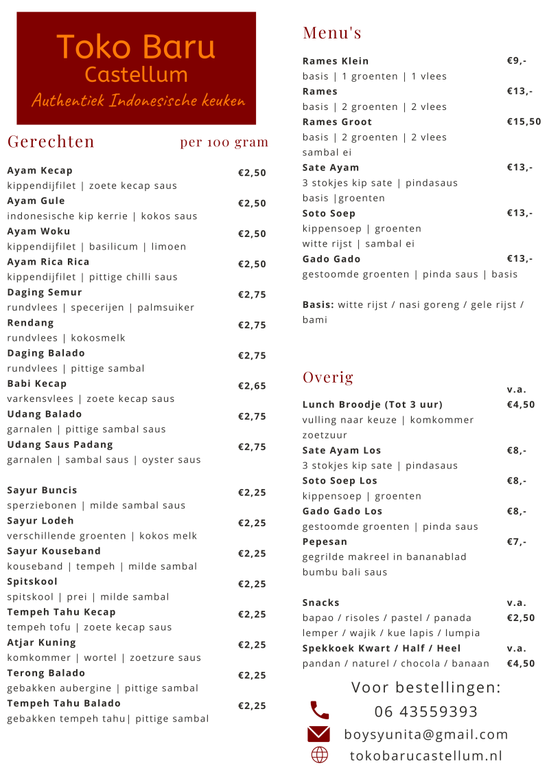 Bij een rames klein menu mag u een basis, een groente en een vlees uitkiezen. U mag vleesgerechten altijd vervangen met andere groente gerechten.