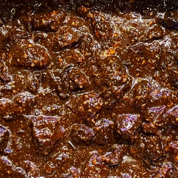 Zoete varkensvlees. Zelfde saus als in de Ayam Kecap maar dan met mals varkensvlees.