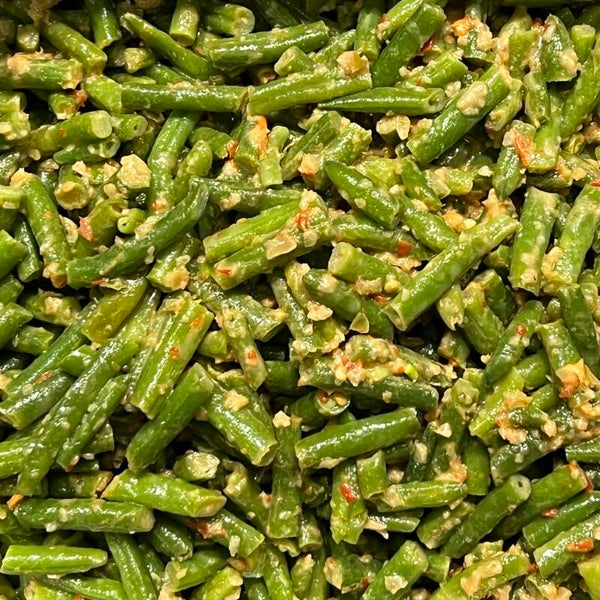 Sperzieboontjes met kokos saus. Heerlijk zacht van smaak. Ons populairste groentegerecht.